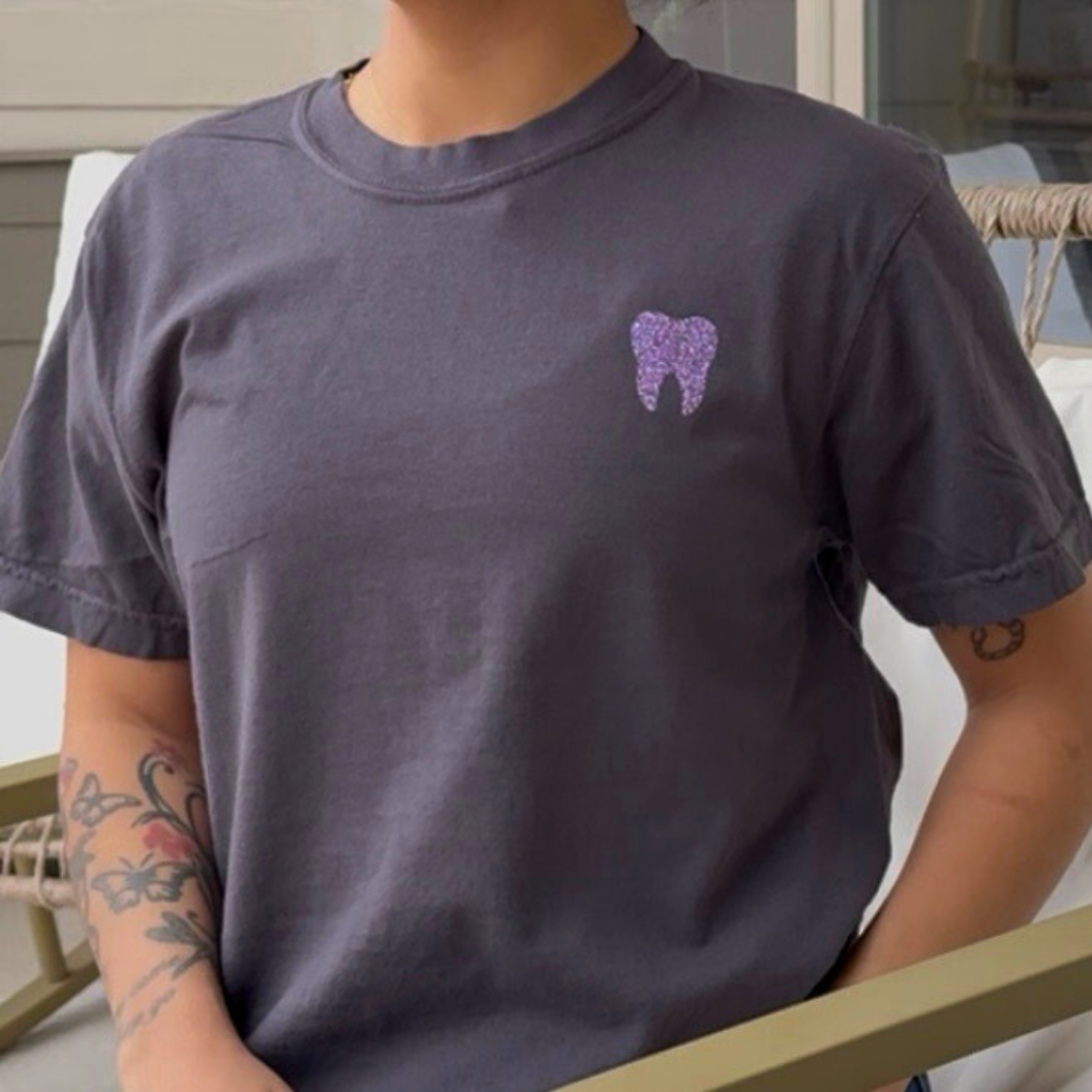 Love this sweatshirt 💜🦷💚✨️🎉🪇🎸 .... digging the Halloween 🎃🎃🎃🎃☠️🤡☠️🤡 theme and the material is awesome 👌 .... the embroidered sleeve rocks 🎸🥁🪘🪗🔊😎